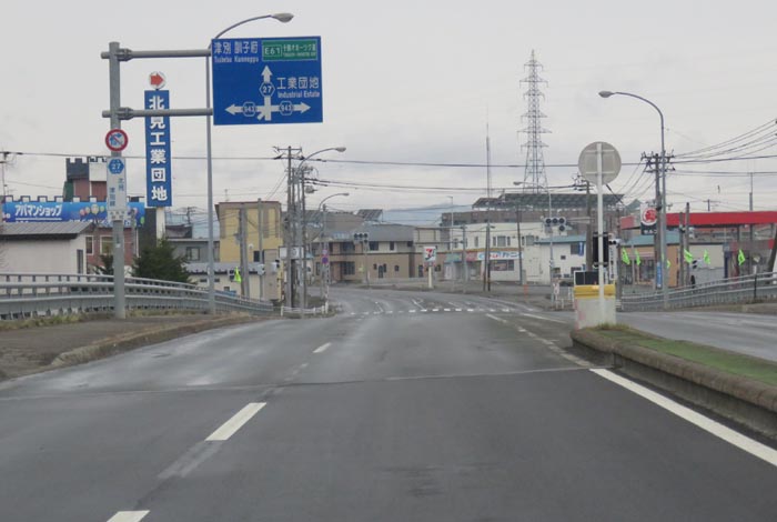 とん田通り、無加川橋を渡り錦町の南岸通り交差点交差点