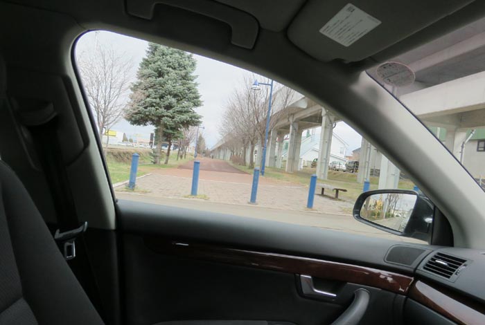 前方がJR石北本線高架橋、写真右が北見駅方向