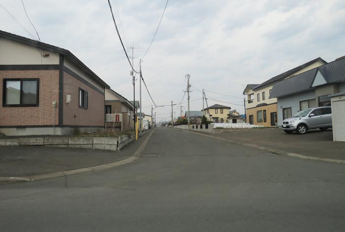 産岸通りから左折して西5号線のバス停前から北光通り方向