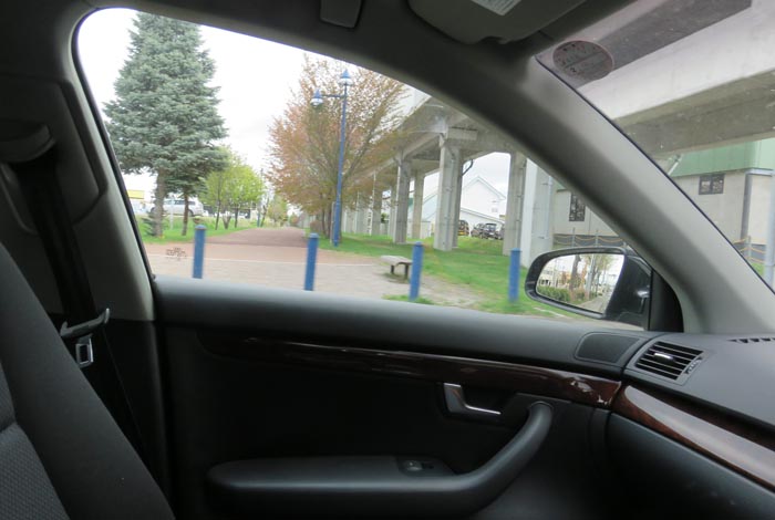 前方がJR石北本線高架橋、写真右が北見駅方向