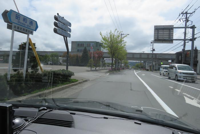 前方がJR石北本線高架橋、写真右が北見駅方向