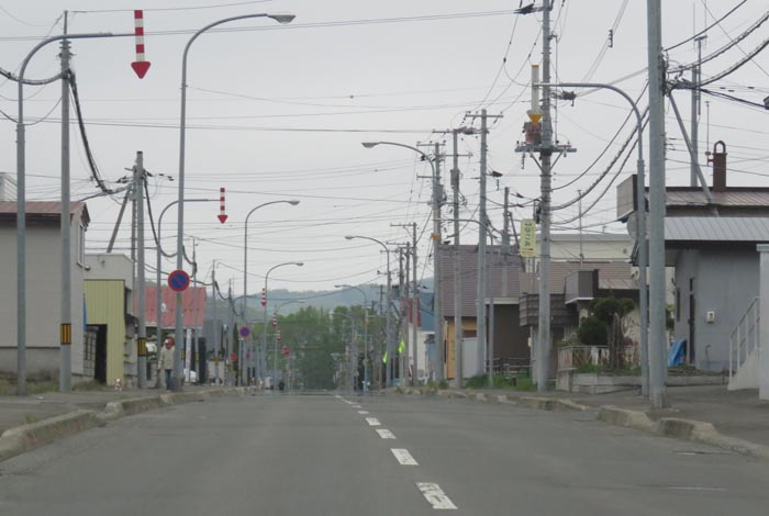 産岸通りから左折して西5号線のバス停前から北光通り方向