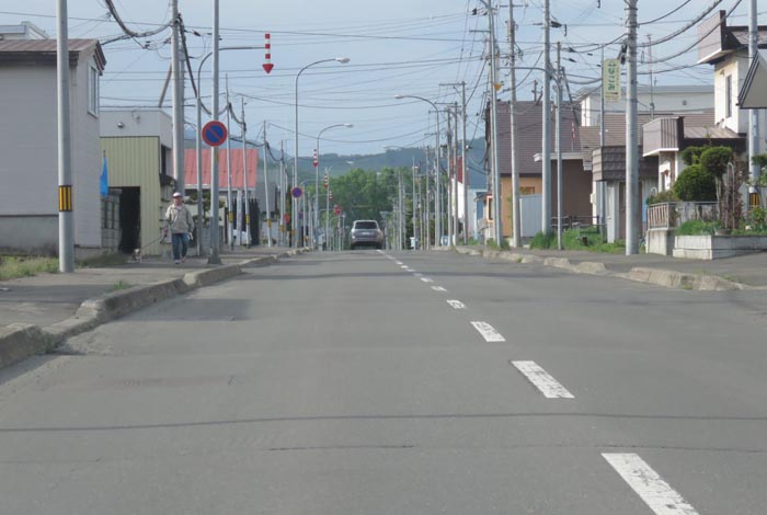 産岸通りから左折して西5号線のバス停前から北光通り方向