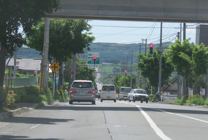 前方がJR石北本線高架橋、写真右が北見駅方向