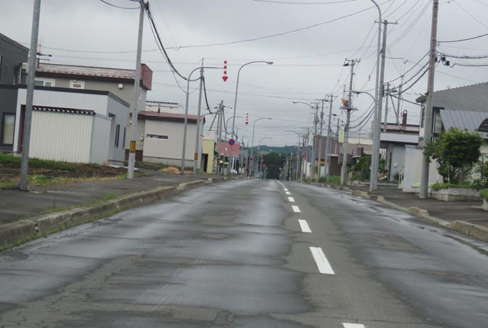 産岸通りから左折して西5号線のバス停前から北光通り方向