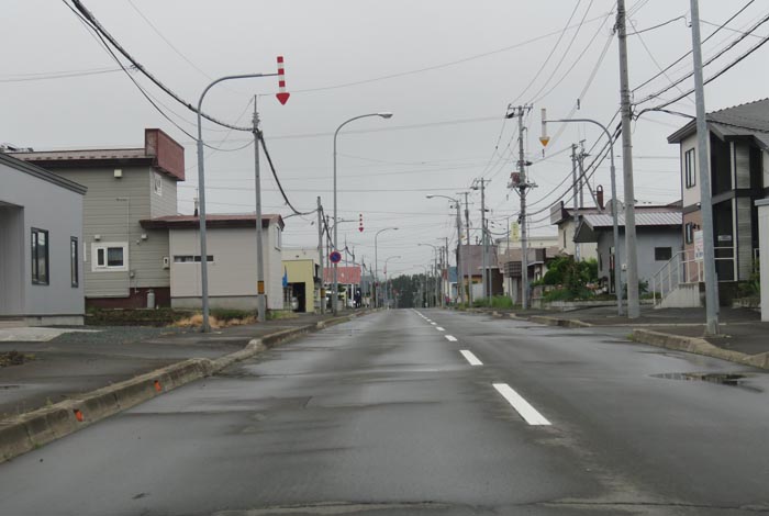 産岸通りから左折して西5号線のバス停前から北光通り方向