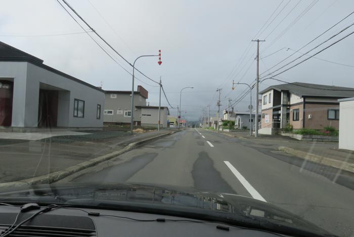 産岸通りから左折して西5号線のバス停前から北光通り方向