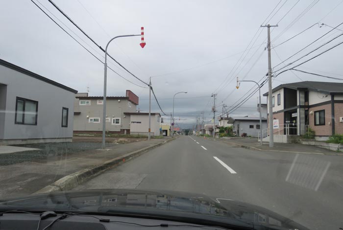 産岸通りから左折して西5号線のバス停前から北光通り方向