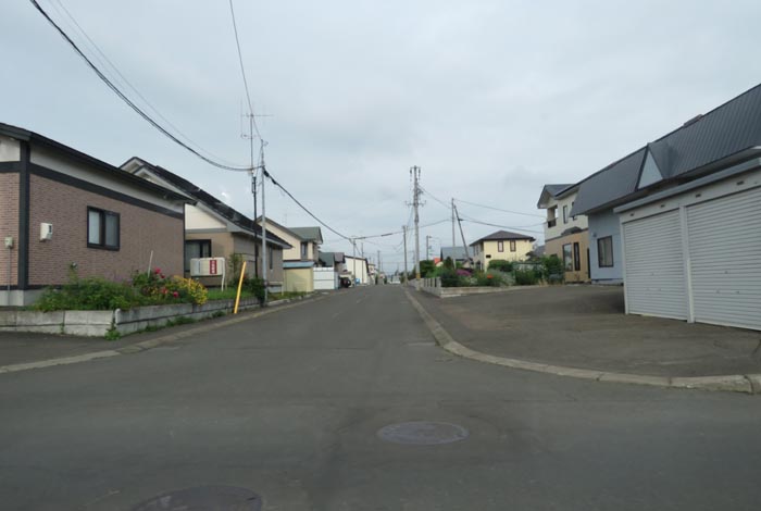 産岸通りから左折して西5号線のバス停前から北光通り方向