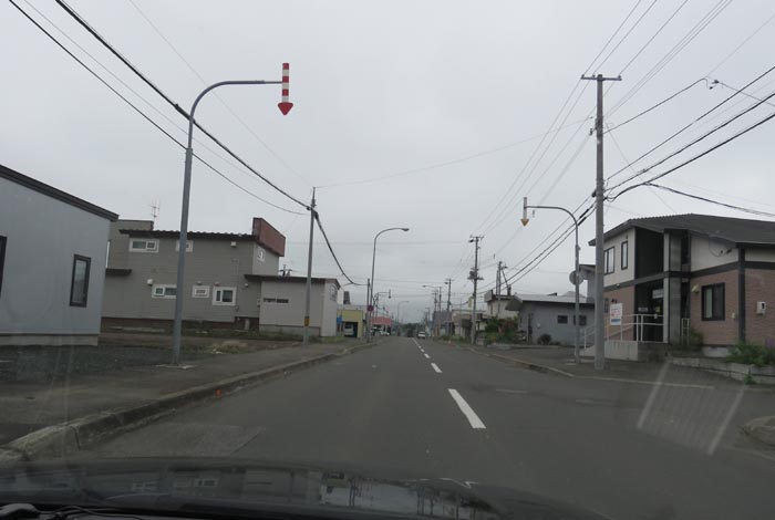 産岸通りから左折して西5号線のバス停前から北光通り方向