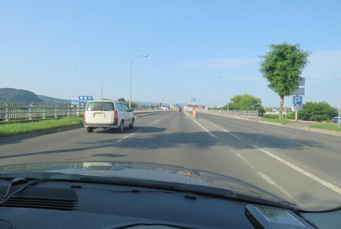 とん田通り、無加川橋を渡り錦町の南岸通り交差点交差点