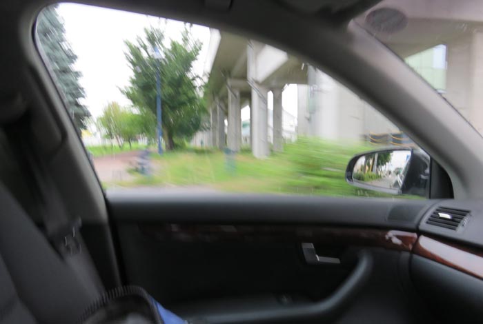前方がJR石北本線高架橋、写真右が北見駅方向