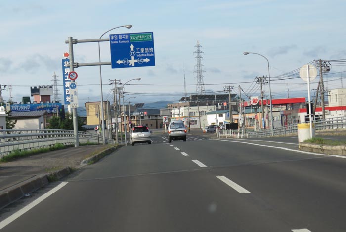 とん田通り、無加川橋を渡り錦町の南岸通り交差点交差点