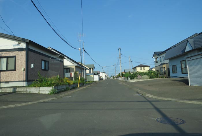 産岸通りから左折して西5号線のバス停前から北光通り方向