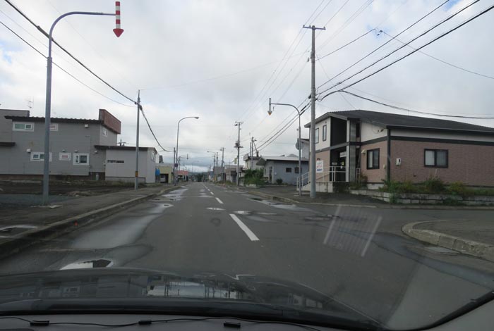 産岸通りから左折して西5号線のバス停前から北光通り方向