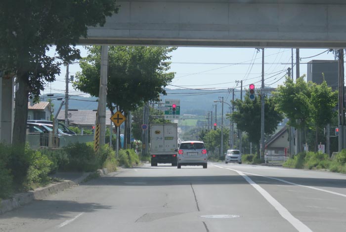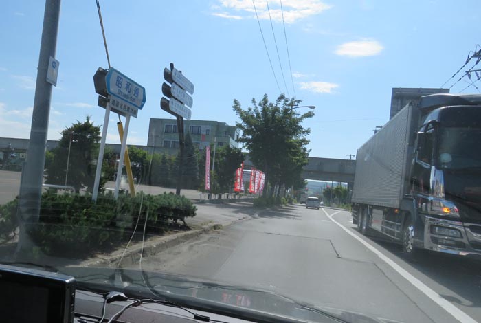 前方がJR石北本線高架橋、写真右が北見駅方向