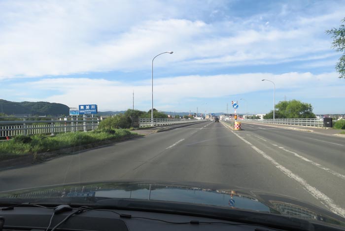 とん田通り、無加川橋を渡り錦町の南岸通り交差点交差点