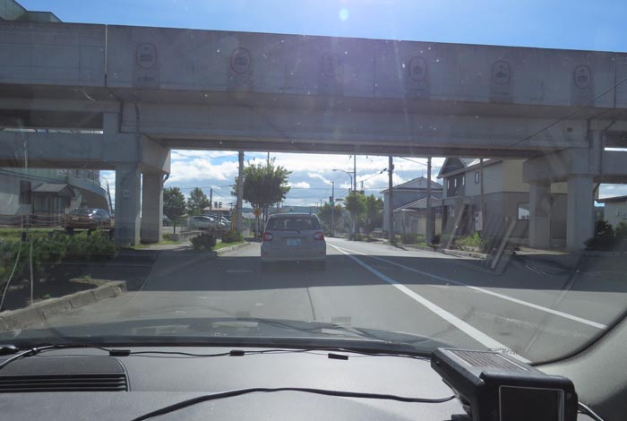 前方がJR石北本線高架橋、写真右が北見駅方向