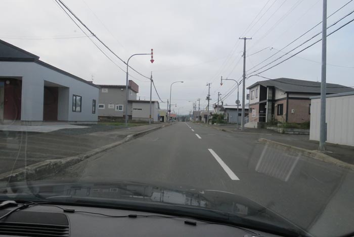 産岸通りから左折して西5号線のバス停前から北光通り方向