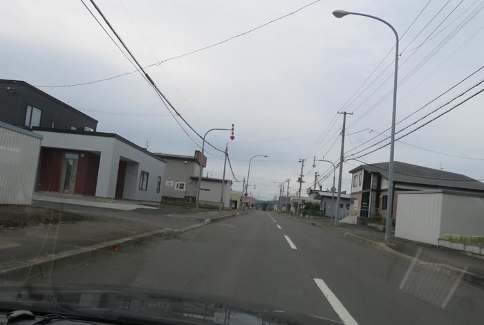 産岸通りから左折して西5号線のバス停前から北光通り方向