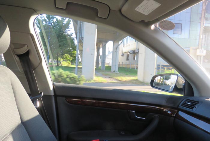 前方がJR石北本線高架橋、写真右が北見駅方向