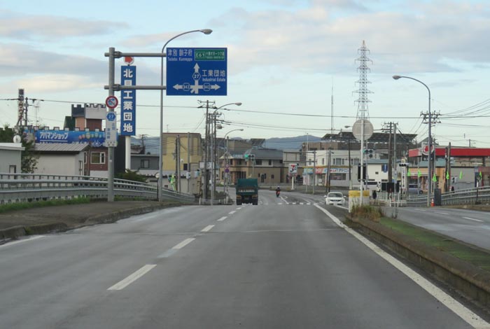 とん田通り、無加川橋を渡り錦町の南岸通り交差点交差点