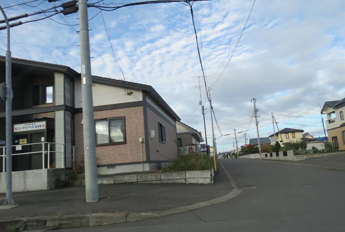 産岸通りから左折して西5号線のバス停前から北光通り方向