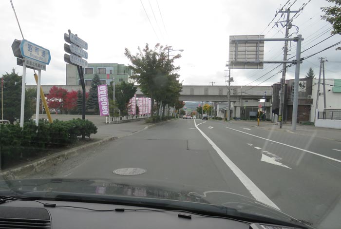 前方がJR石北本線高架橋、写真右が北見駅方向