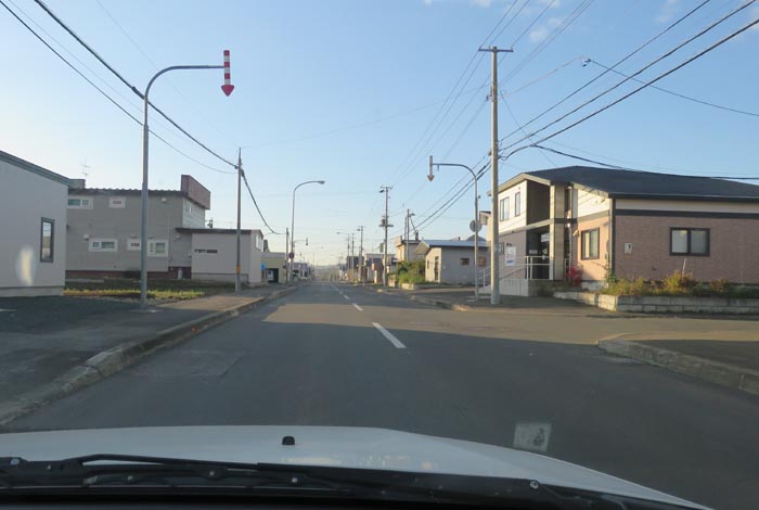 産岸通りから左折して西5号線のバス停前から北光通り方向