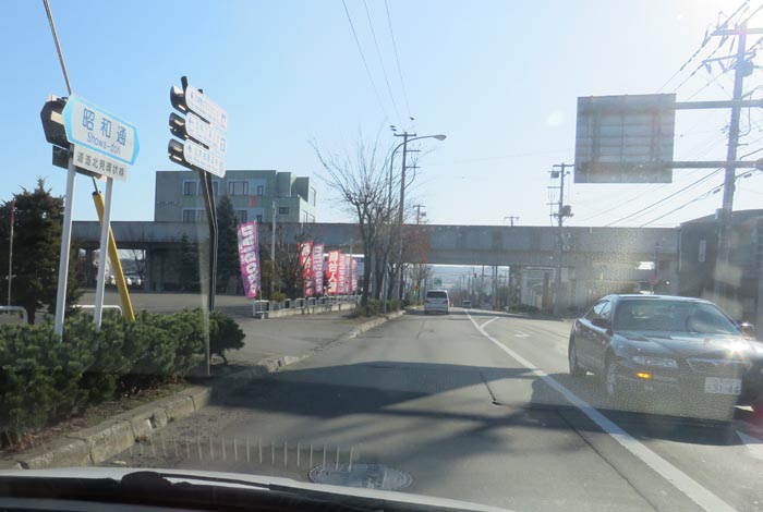 前方がJR石北本線高架橋、写真右が北見駅方向