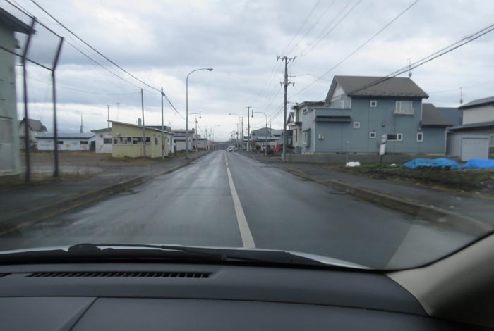 産岸通りから左折して西5号線のバス停前から北光通り方向
