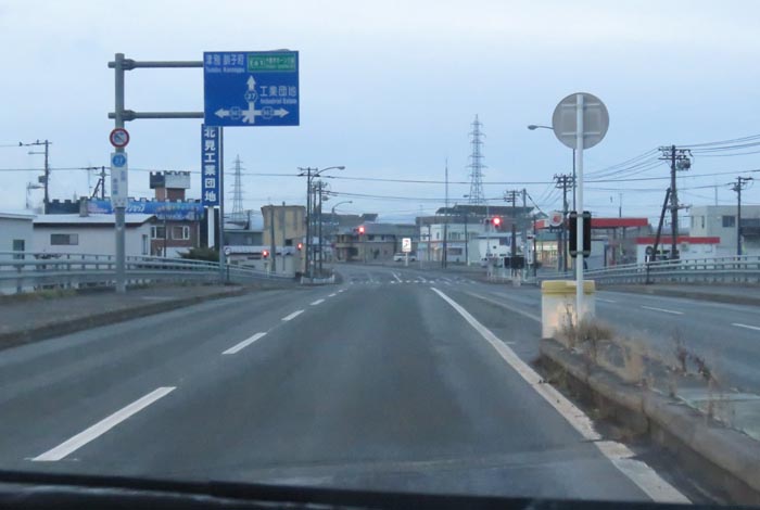 とん田通り、無加川橋を渡り錦町の南岸通り交差点交差点