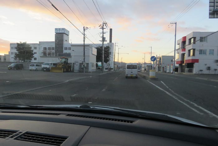 午前6時50分、西3号線とん田通りの北見中央病院前から無加川橋方向