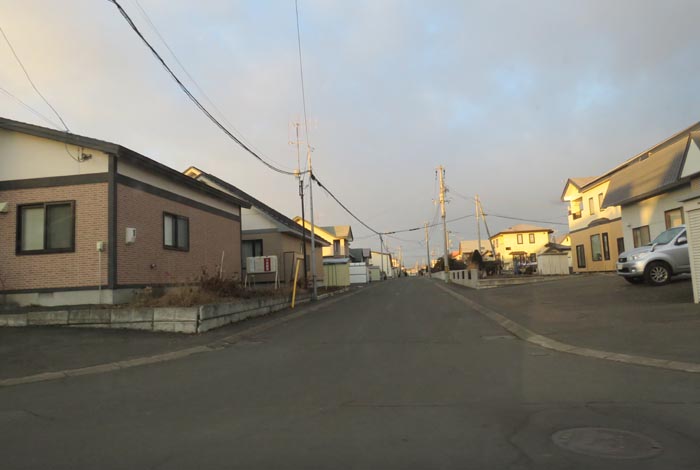 産岸通りから左折して西5号線のバス停前から北光通り方向