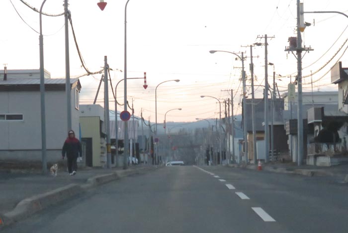 産岸通りから左折して西5号線のバス停前から北光通り方向