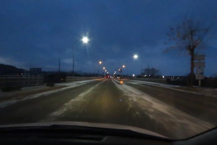 午前6時25分、西3号線とん田通りの北見中央病院前から無加川橋方向