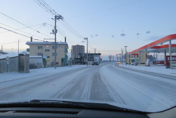 午前6時50分、西3号線とん田通りの北見中央病院前から無加川橋方向