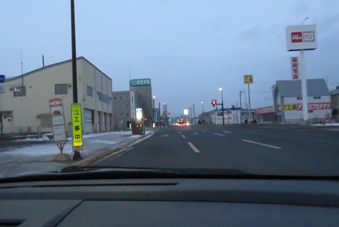 午前6時40分、北4条通りの国道39号交差点から緑園通り方向