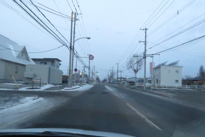 午前6時50分、南岸通り、野付牛自動車学校前から無加川町方向
