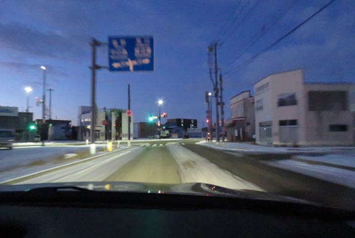 午前6時30分、松浦水産駐車場裏の通りを北3条通り側から北4条通り方向