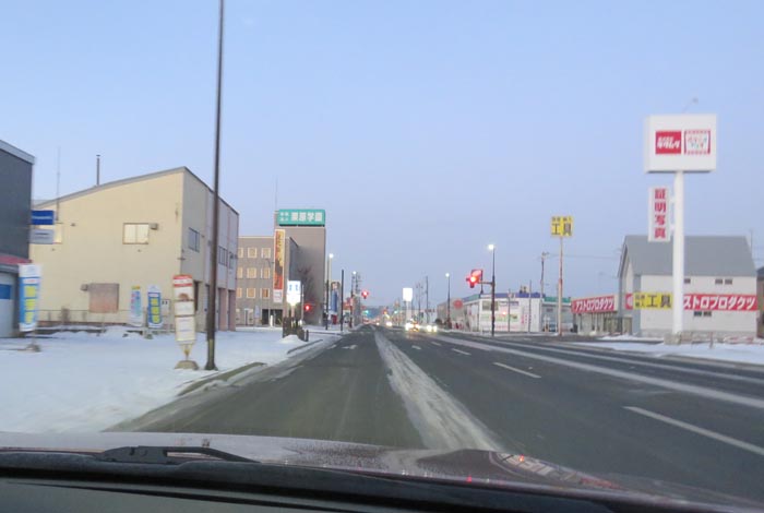 午前6時40分、北4条通りの国道39号交差点から緑園通り方向