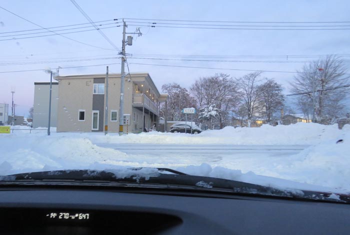 午前6時40分、松浦水産駐車場裏の通りを北3条通り側から北4条通り方向