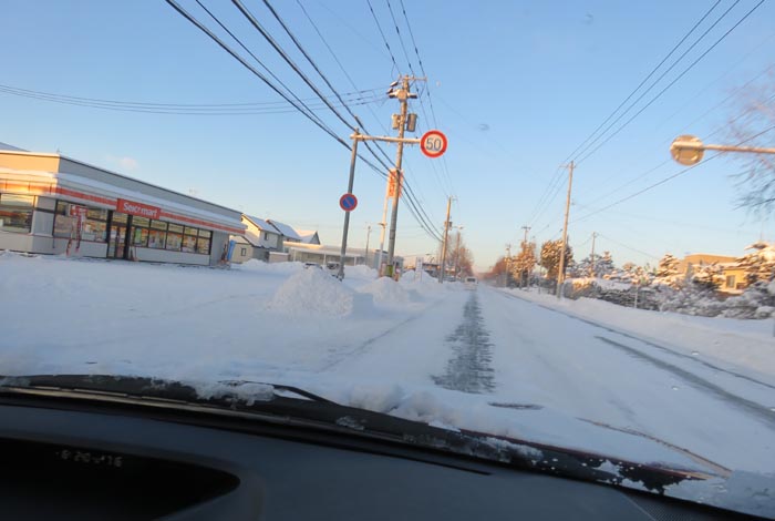 午前6時50分、南岸通り、野付牛自動車学校前から無加川町方向