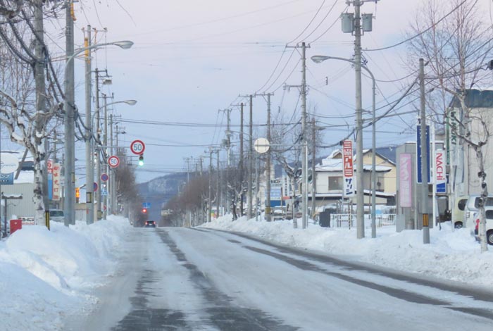 午前7時前、南岸通り、野付牛自動車学校前から無加川町方向