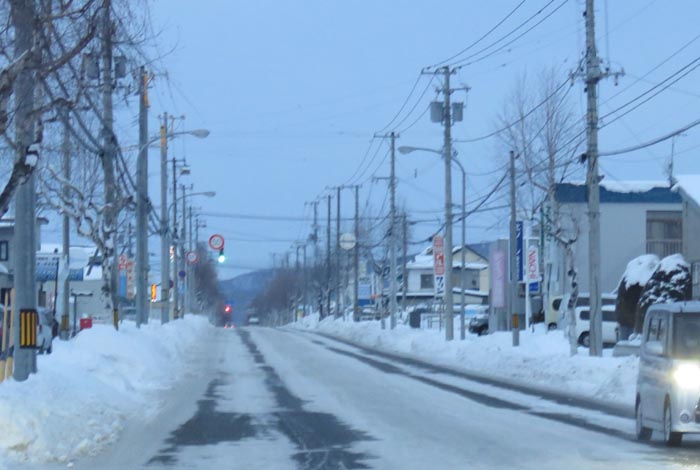 午前6時50分、南岸通り、野付牛自動車学校前から無加川町方向