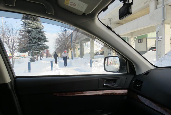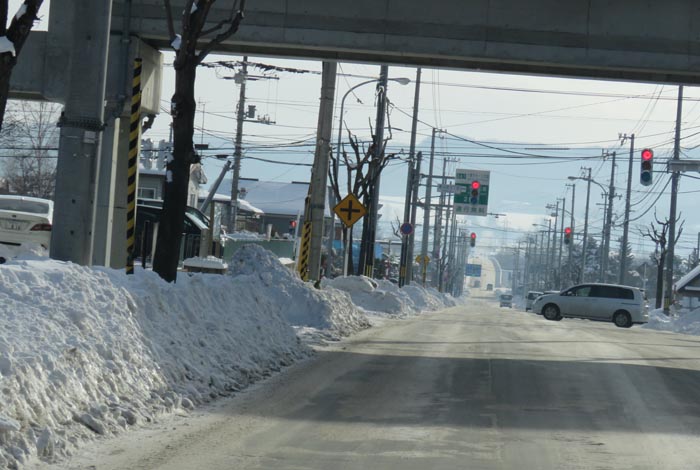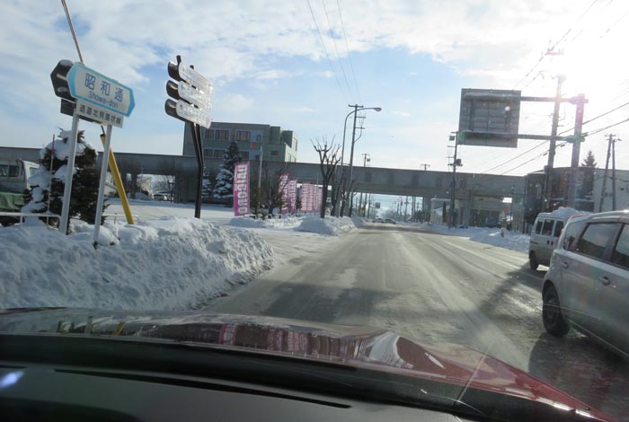 前方がJR石北本線高架橋、写真右が北見駅方向