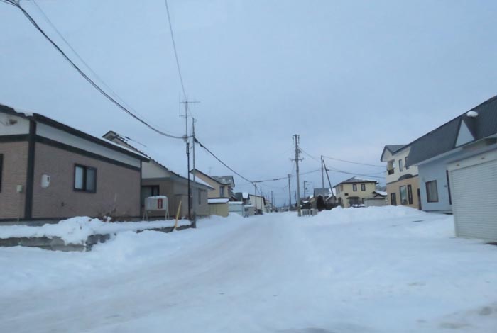 産岸通りから左折して西5号線のバス停前から北光通り方向