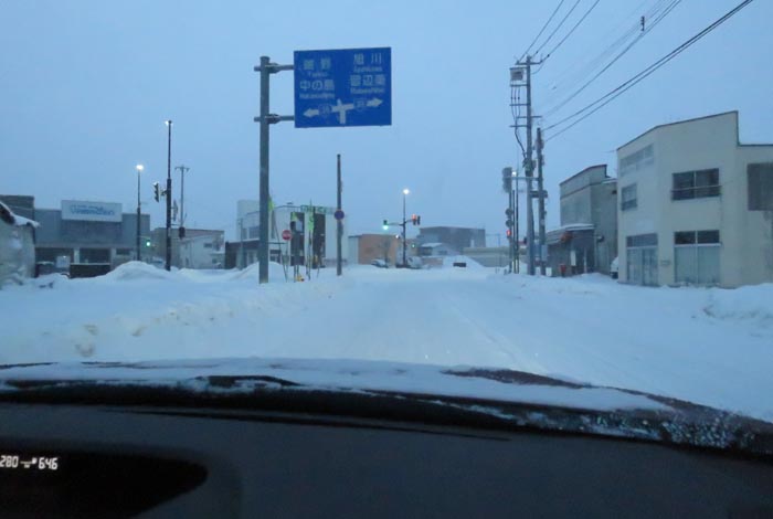 午前6時40分、松浦水産駐車場裏の通りを北3条通り側から北4条通り方向