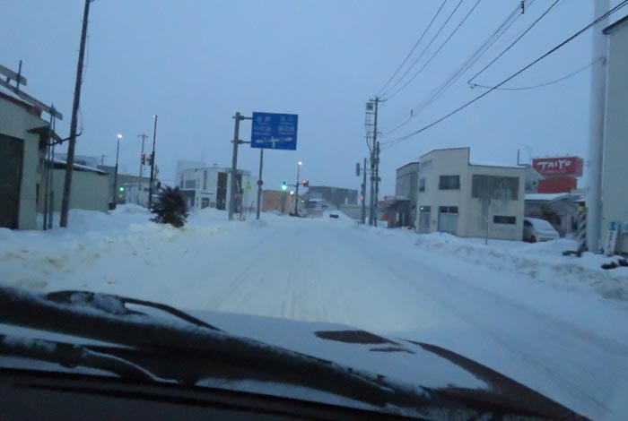 午前6時40分、松浦水産駐車場裏の通りを北3条通り側から北4条通り方向