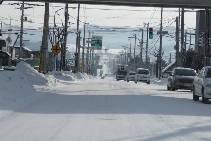前方がJR石北本線高架橋、写真右が北見駅方向